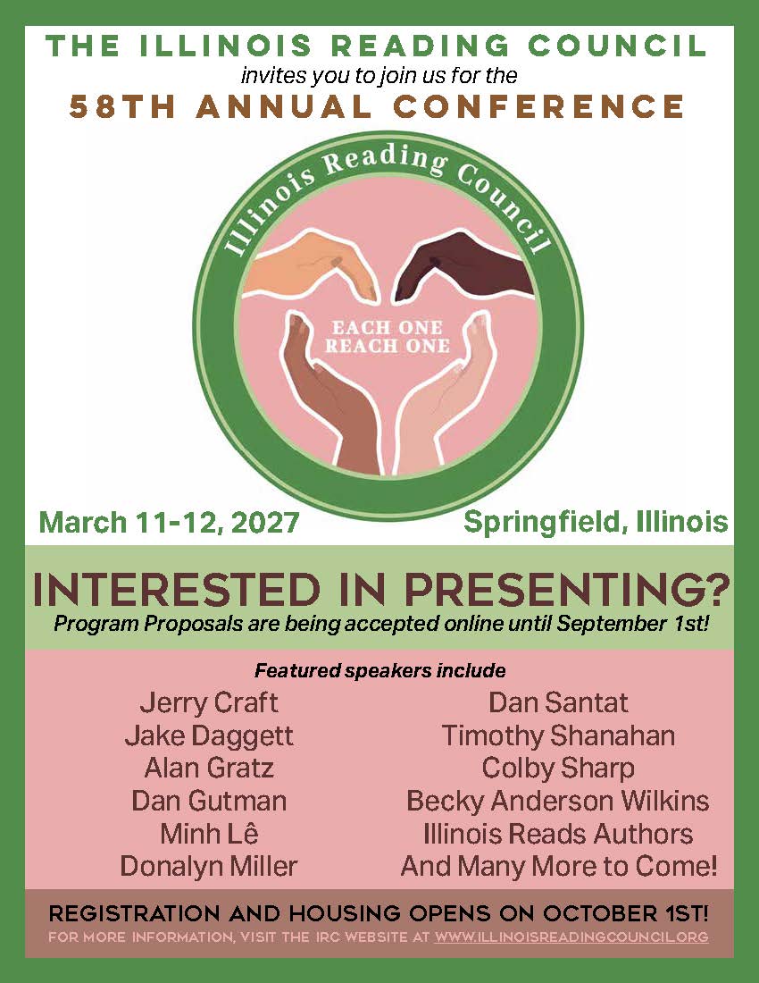 Join IRC at the 58th Annual IRC Conference from March 11-12, 2027 at the Bank of Springfield Center and President Abraham Lincoln Hotel in Springfield, Illinois. IRC will be excited to learn from the following featured speakers who will help teachers, specialists, and administrators from every grade-level and content area.